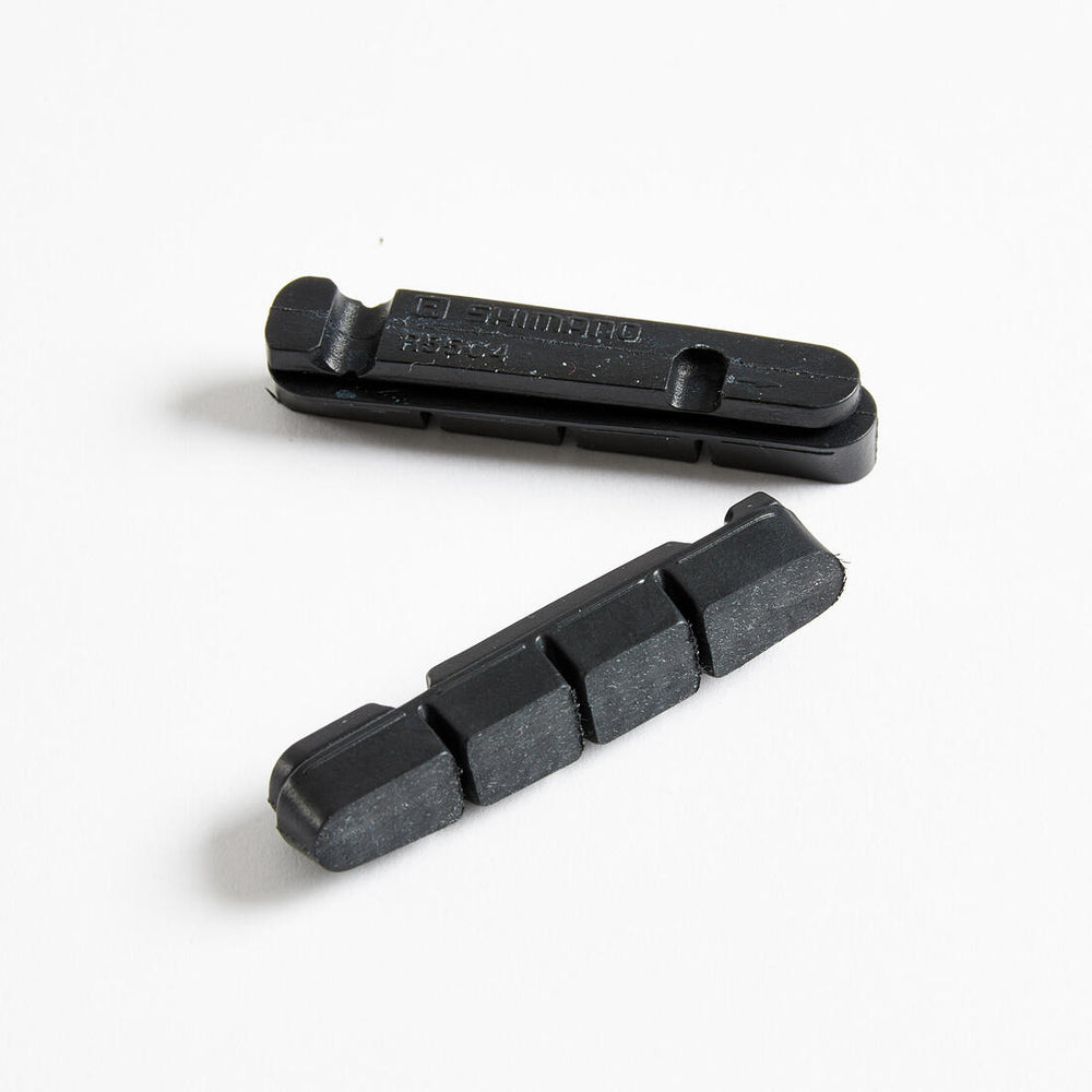 Ces 4 gommes de frein R55C4 remplacent vos patins sur vélo de route avec supports Shimano Ultegra ou Dura-Ace. Elles assurent un freinage efficace par temps sec et résistent à l'usure sous la pluie.
