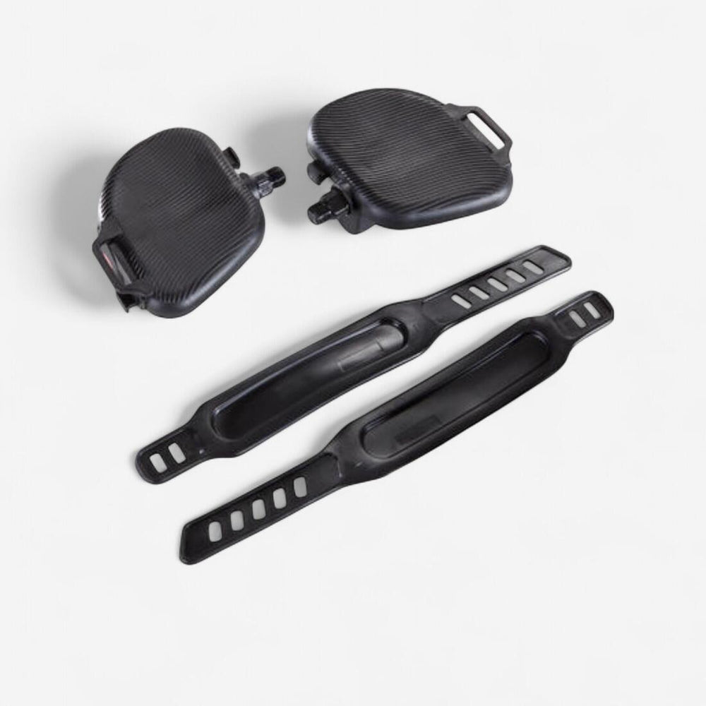 Ces pédales sont adaptables sur un pédalier monobloc (diamètre de filetage : 12.5 mm). Paire de pédales fournies avec les sangles.