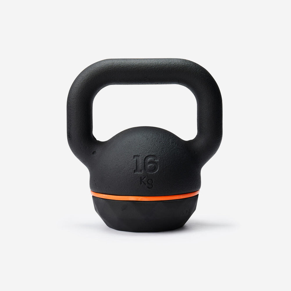 Kettlebell en fonte et base caoutchouc 16 kg, composé à 80 % de fonte recyclée