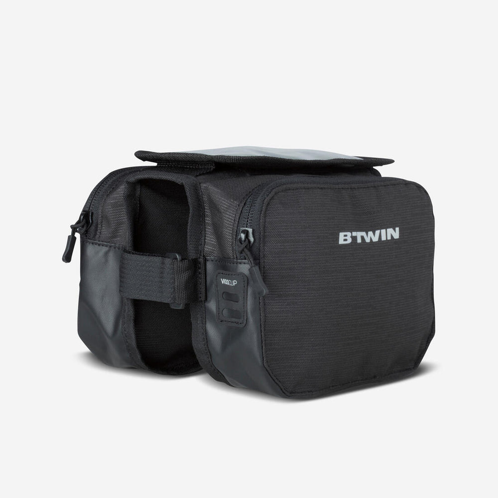 Nos équipes ont développé cette sacoche de cadre pour transporter votre téléphone et vos petits effets personnels.