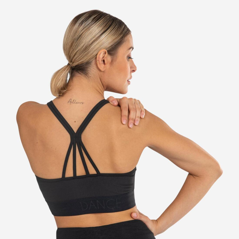 Différents styles s'offrent à vous si vous optez pour cette brassière de danse moderne. Portée seule, vous pouvez laisser libre cours à vos mouvements en laissant apparaître les bretelles et l'élastique en relief. Associée à un débardeur, les bretelles seront couvertes par celui-ci pour un dos élégant.