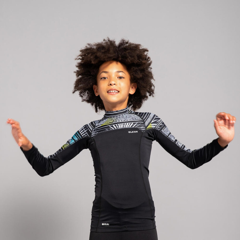 Tee shirt anti-UV junior manches longues pour protéger du soleil, même dans l'eau, et limiter les irritations au contact de la planche. Coupe ajustée, composant stretch et confort !