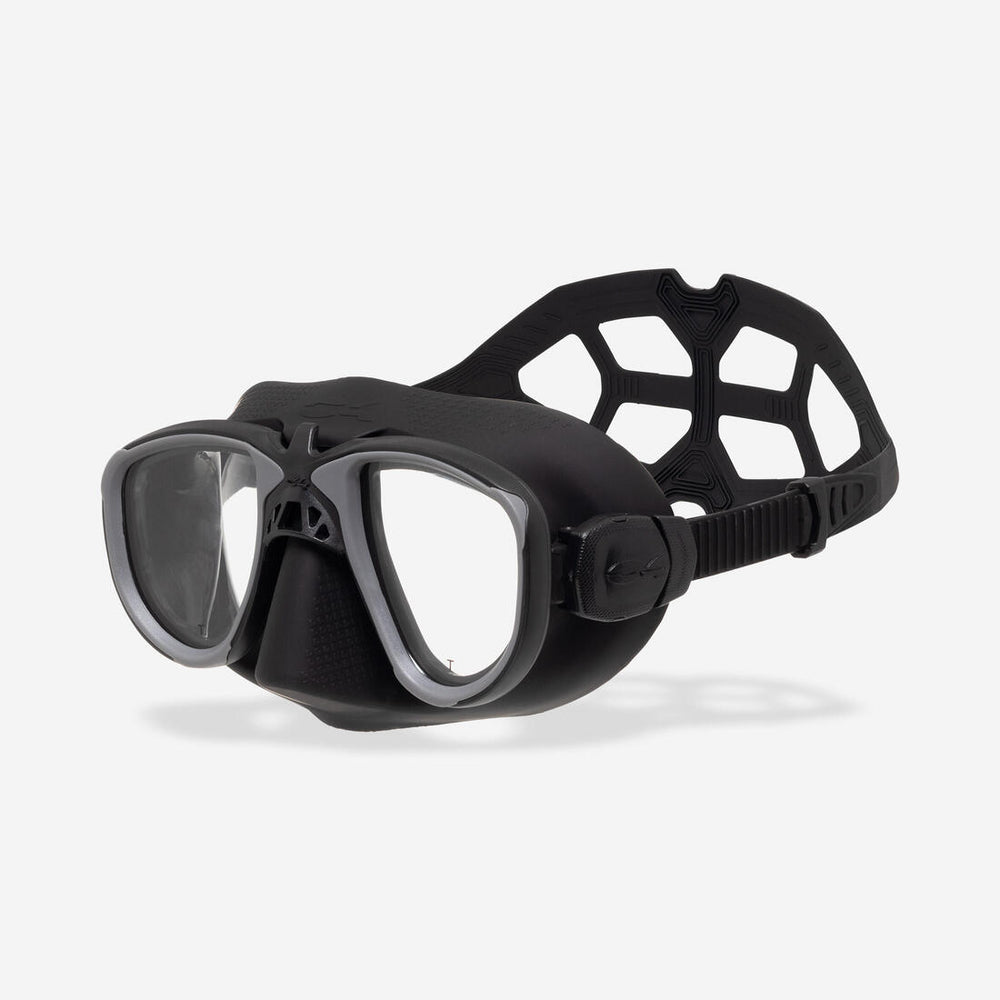 Masque polyvalent qui allie un large champ de vision et un volume réduit. Convient aux chasseurs sous-marins et apnéistes de tous niveaux pour les sorties en mer ou séances d'entrainement en piscine.