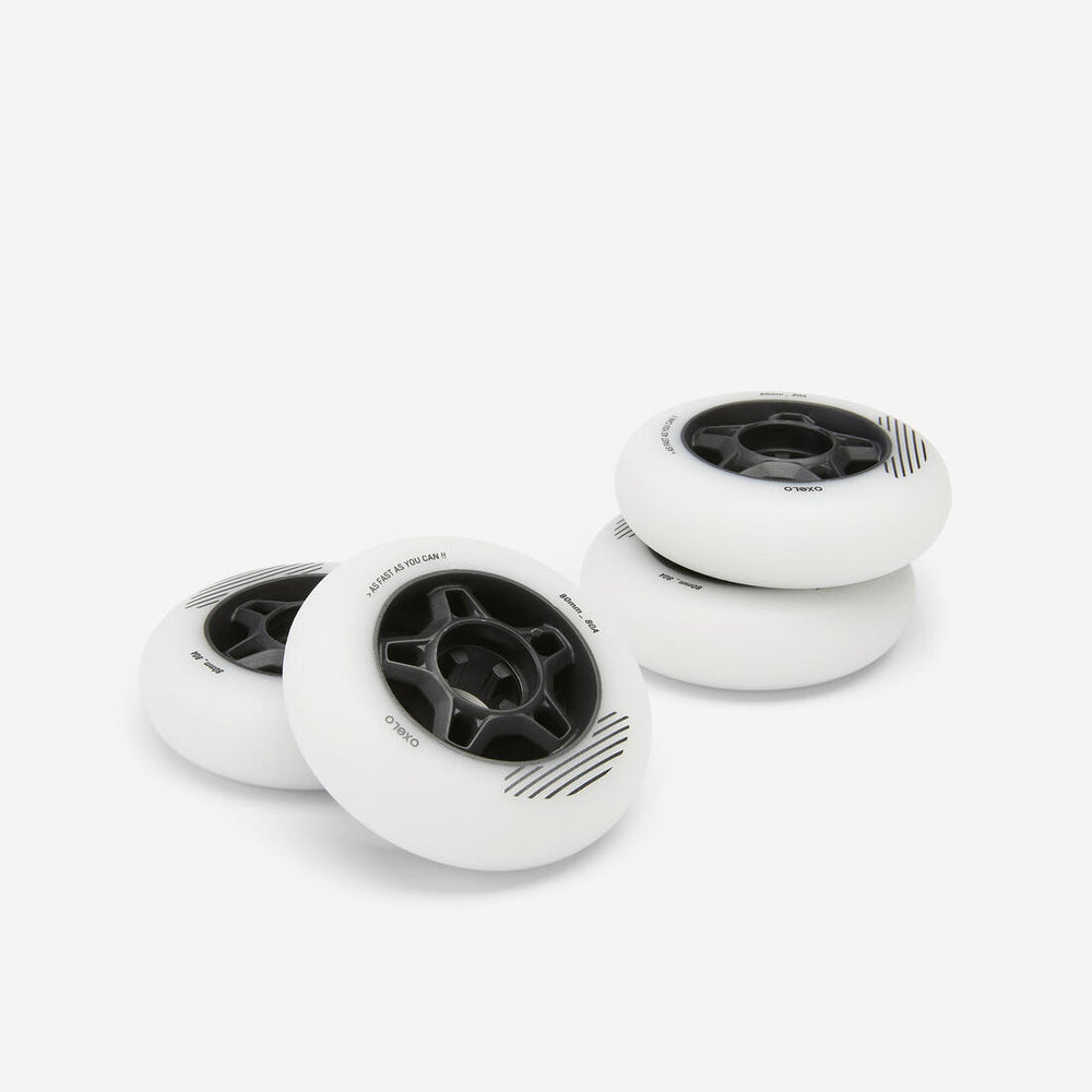 4 roues de roller en ligne fitness adulte FIT 80mm 80A blanches