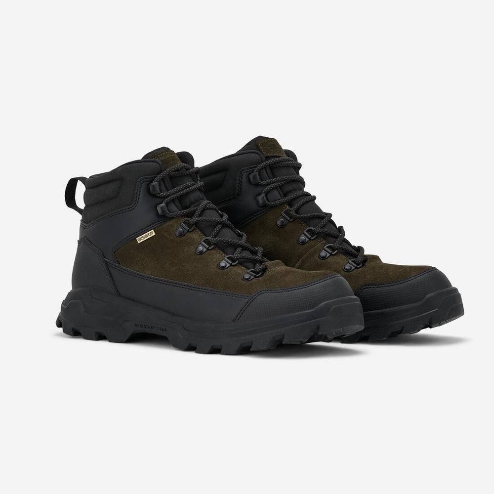 L'imperméabilité est assurée par une membrane placée sous le cuir de la tige. Elle bloque l'eau mais pas la transpiration. Nous l'avons soumise à 2 tests : immersion totale dans l'eau pendant 6h, et 30 000 flexions immergées, sans aucune prise d'eau ! De quoi marcher sous la pluie sans crainte.