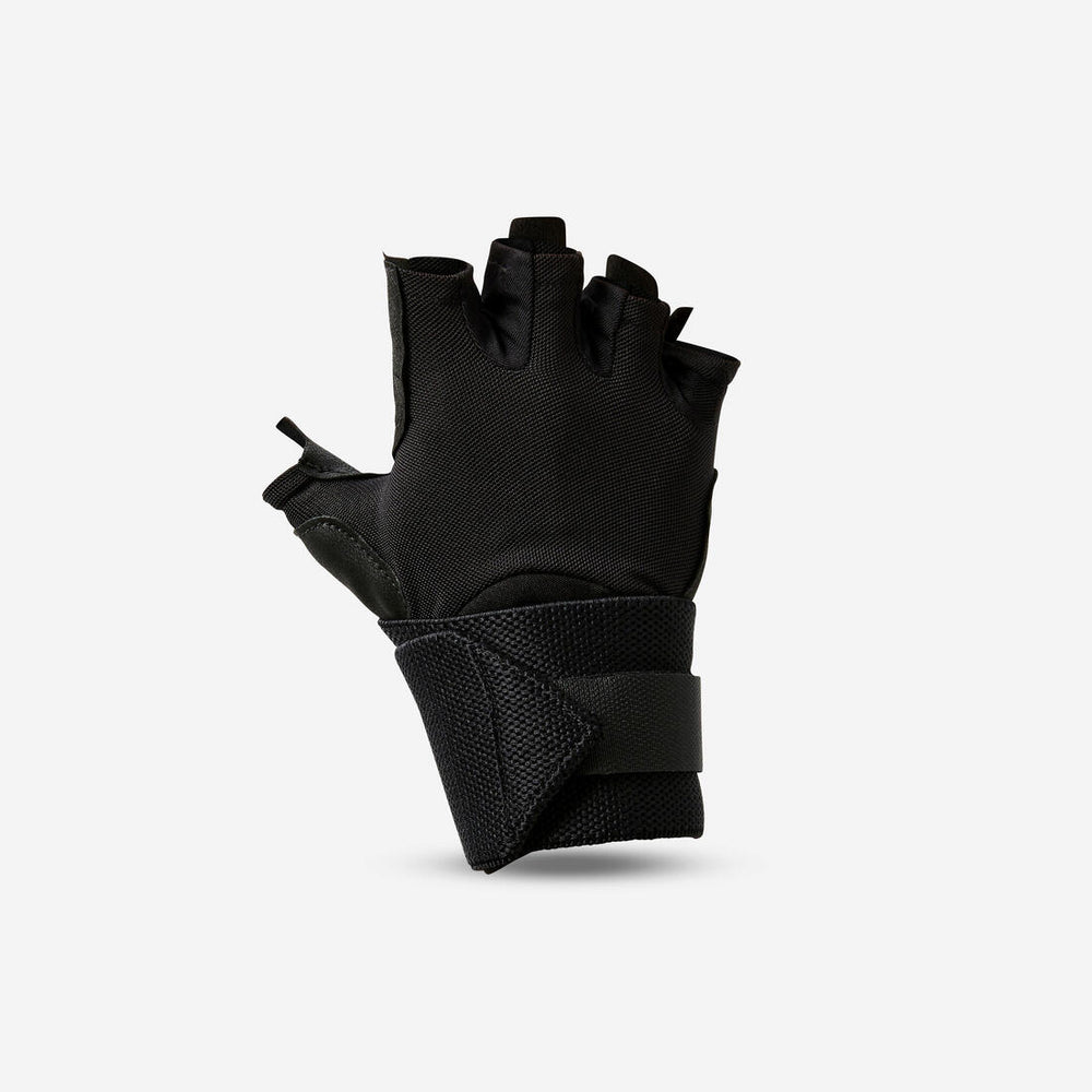 Ces gants de musculation 900 noirs, en forme de mitaine, sont disponibles de la taille S à 3XL :