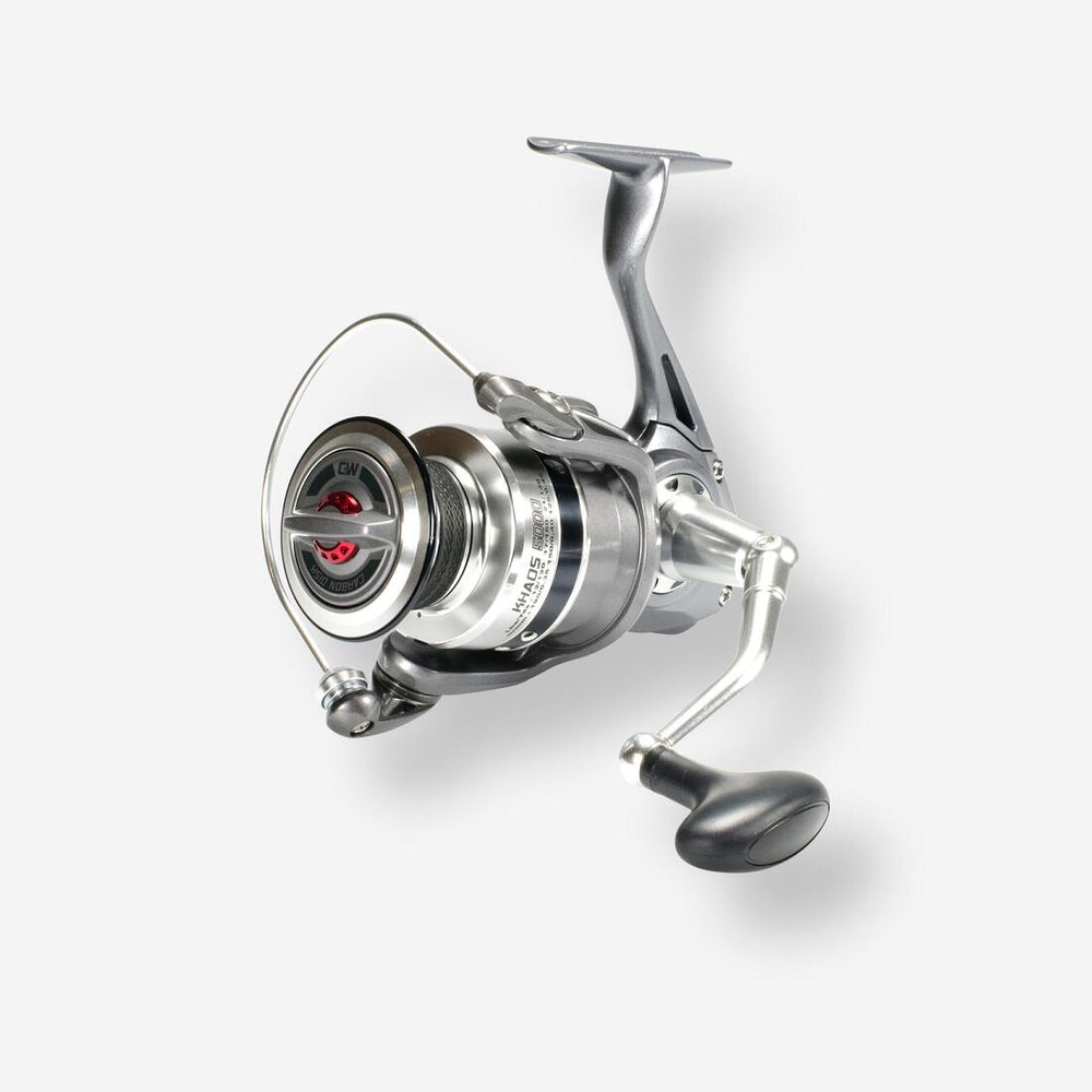 Robuste grâce à son bâti en aluminium, le Khaos 5000 permet de maîtriser les gros poissons de mer grâce à son frein multidisques en carbone d'une puissance de 13 kg.