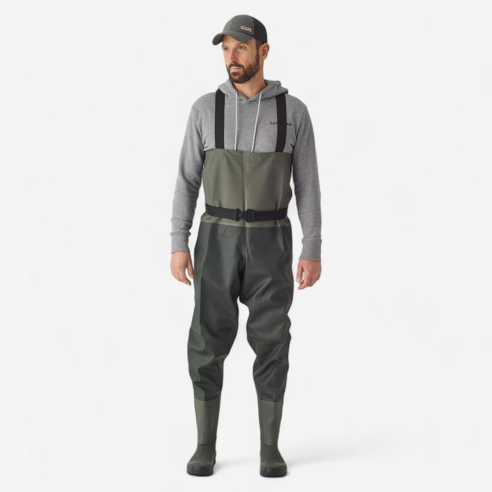 Nos équipes ont développé ces waders résistants en PVC pour vous permettre de pêcher en wading en restant au sec jusqu'à la poitrine par temps tempéré.